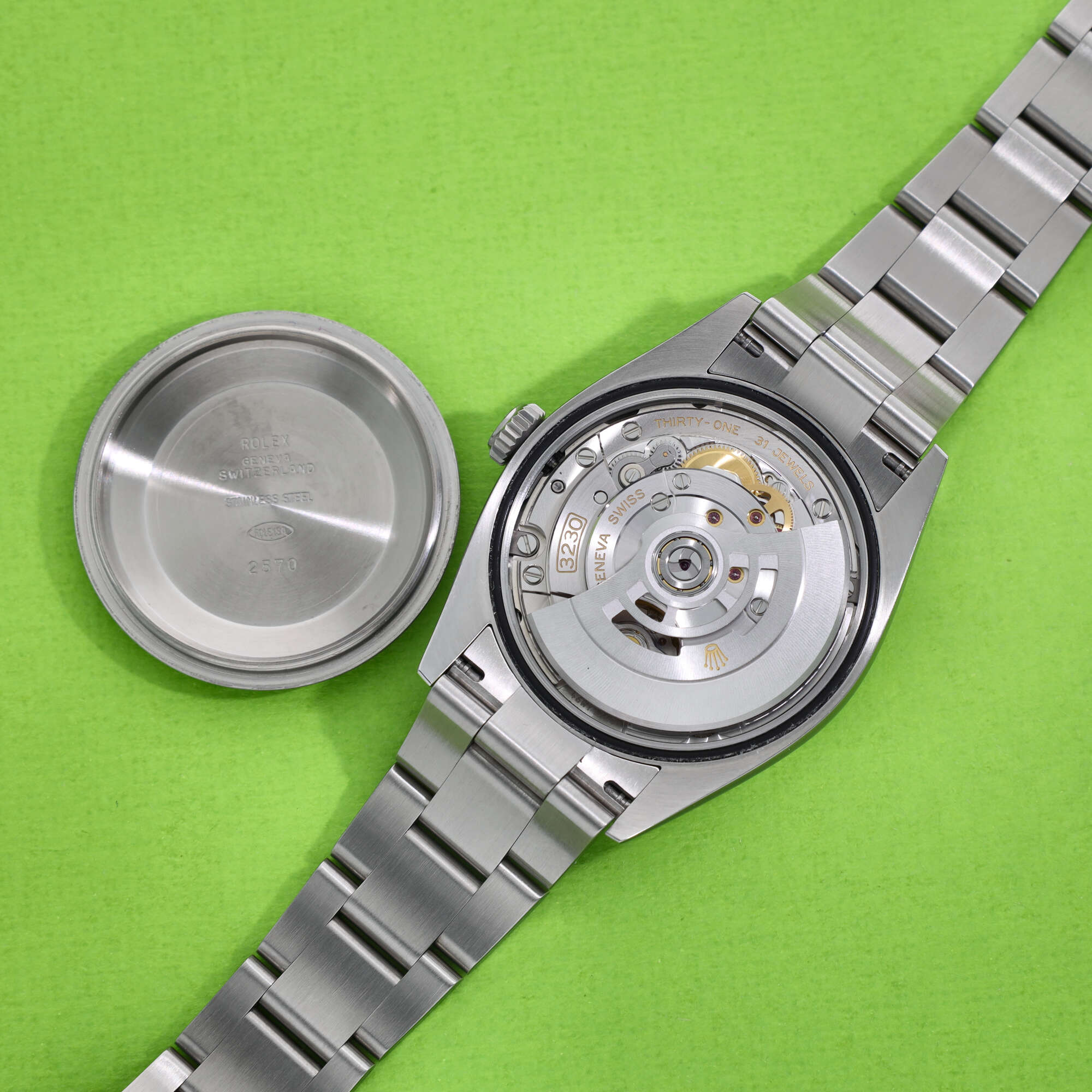 Oh how I love 36mm oyster cases.. 🥰 Really the best size there is, just enough bracelet, just enough watch. It makes a watch the complementary item it should be. This one is not for the looks from others, it is for your own eyes. Subtle and understated. 🥸 One of the most balanced dials out there, the classic 3-6-9. 🙂↕️