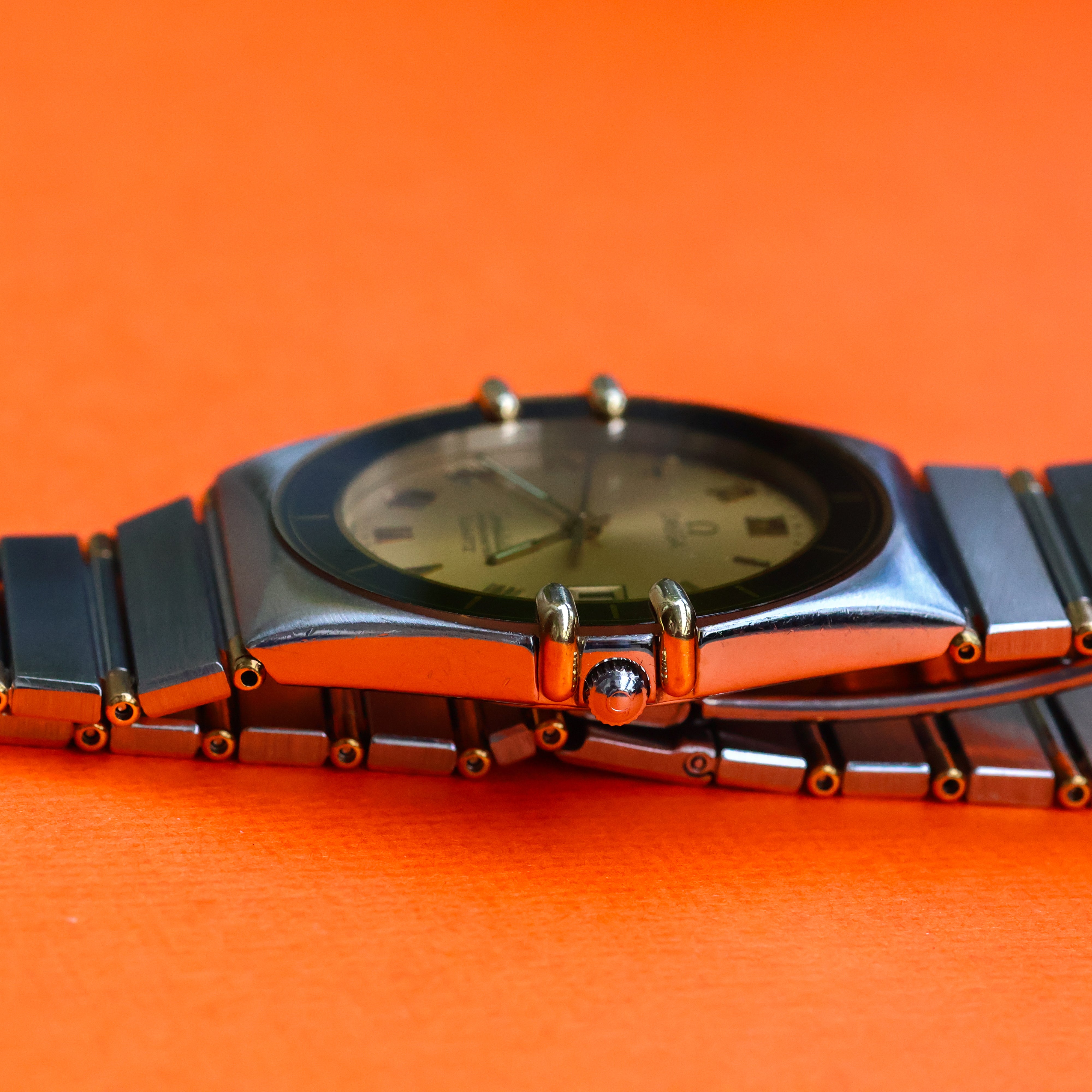 Ah... the older brother of the 1448/431 I also had in the collection. Same goes for this watch, I still love myself some integrated bracelets.. The 1980s style is definitely visible in this one, just look at that funky case shape! 😏 What really makes this one stand out is the bezel integrated into the crystal, such a cool touch, making it a bit more unique opposed to its younger brother. The bezel looks brown when the light hits it right, perfectly fitting the warm look of the gold dial. You cannot go wrong with either of them though, especially at this price range. It feels like a million bucks on the wrist, for under 1K.. 💰