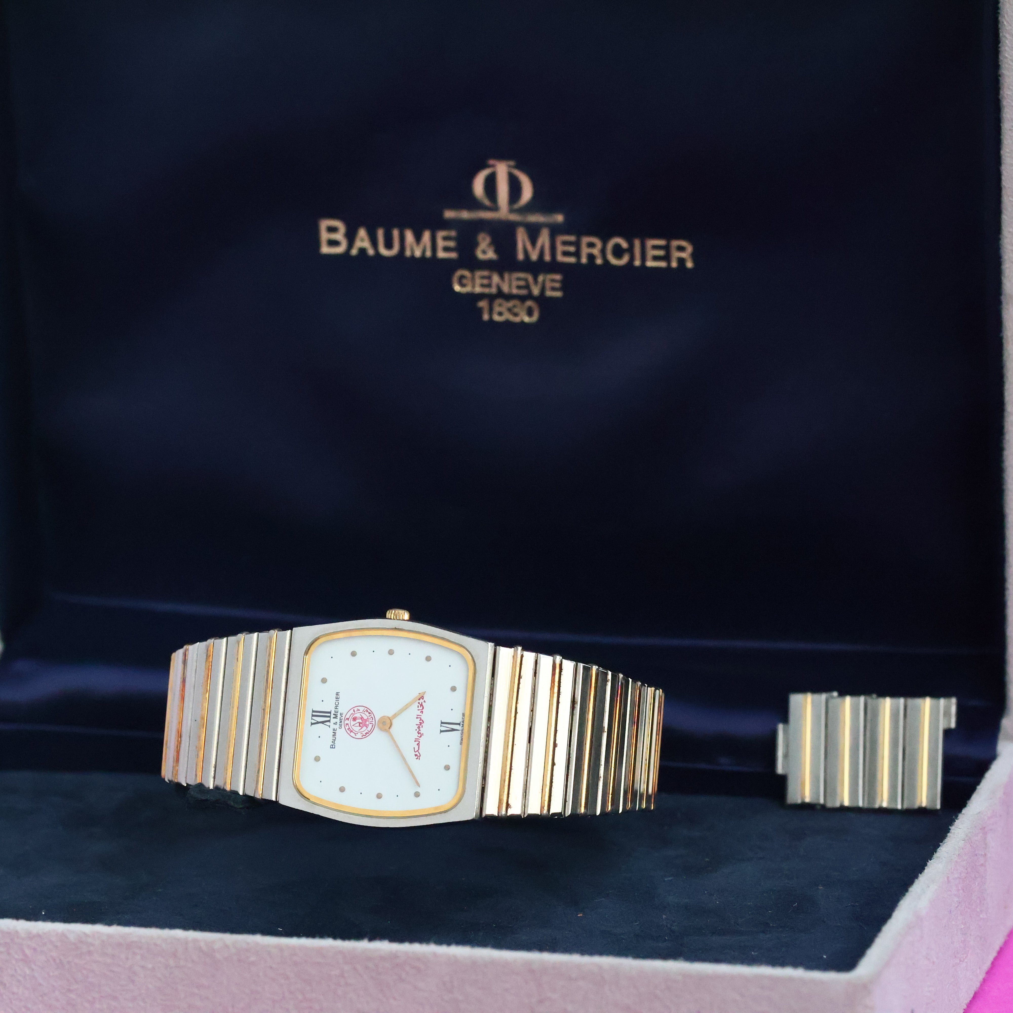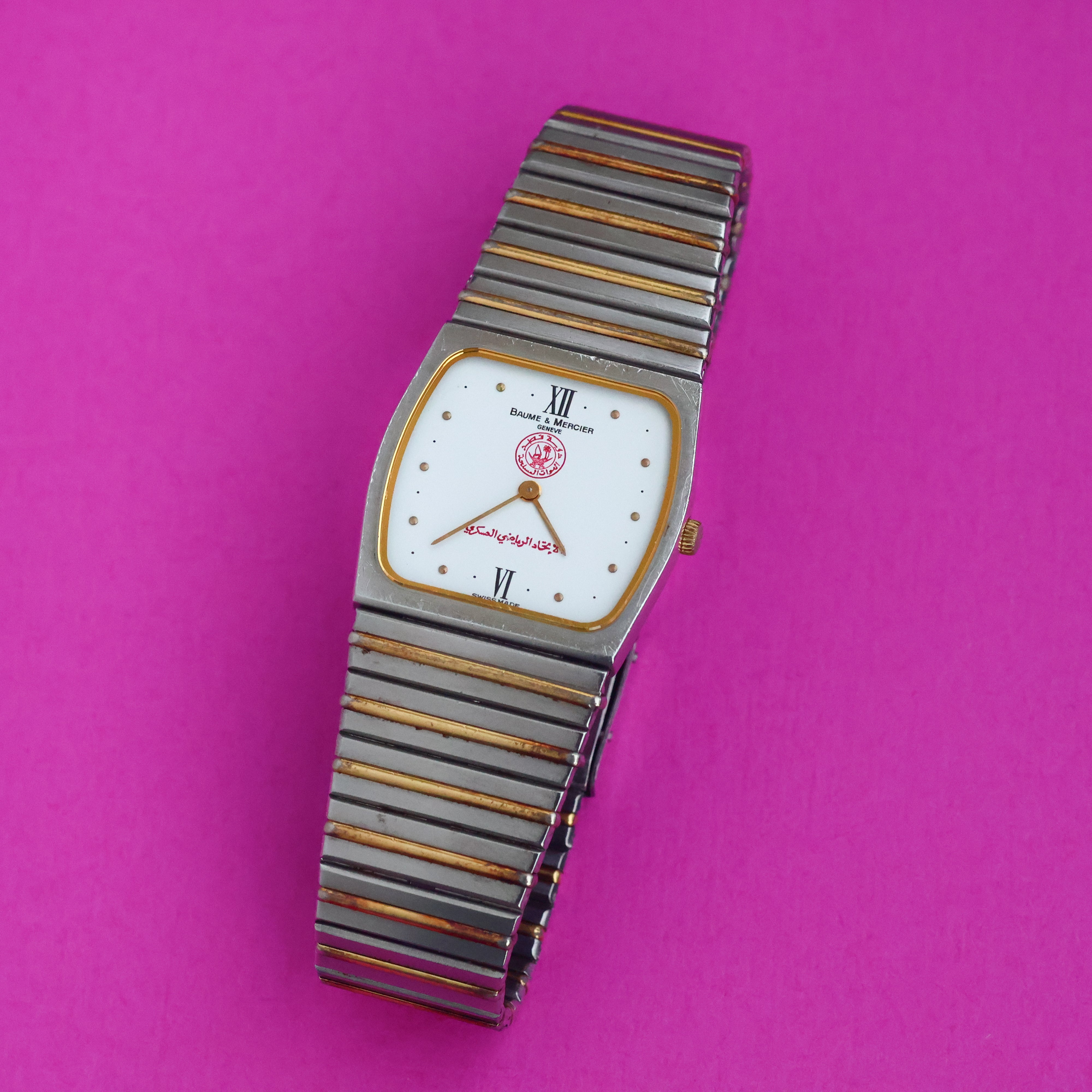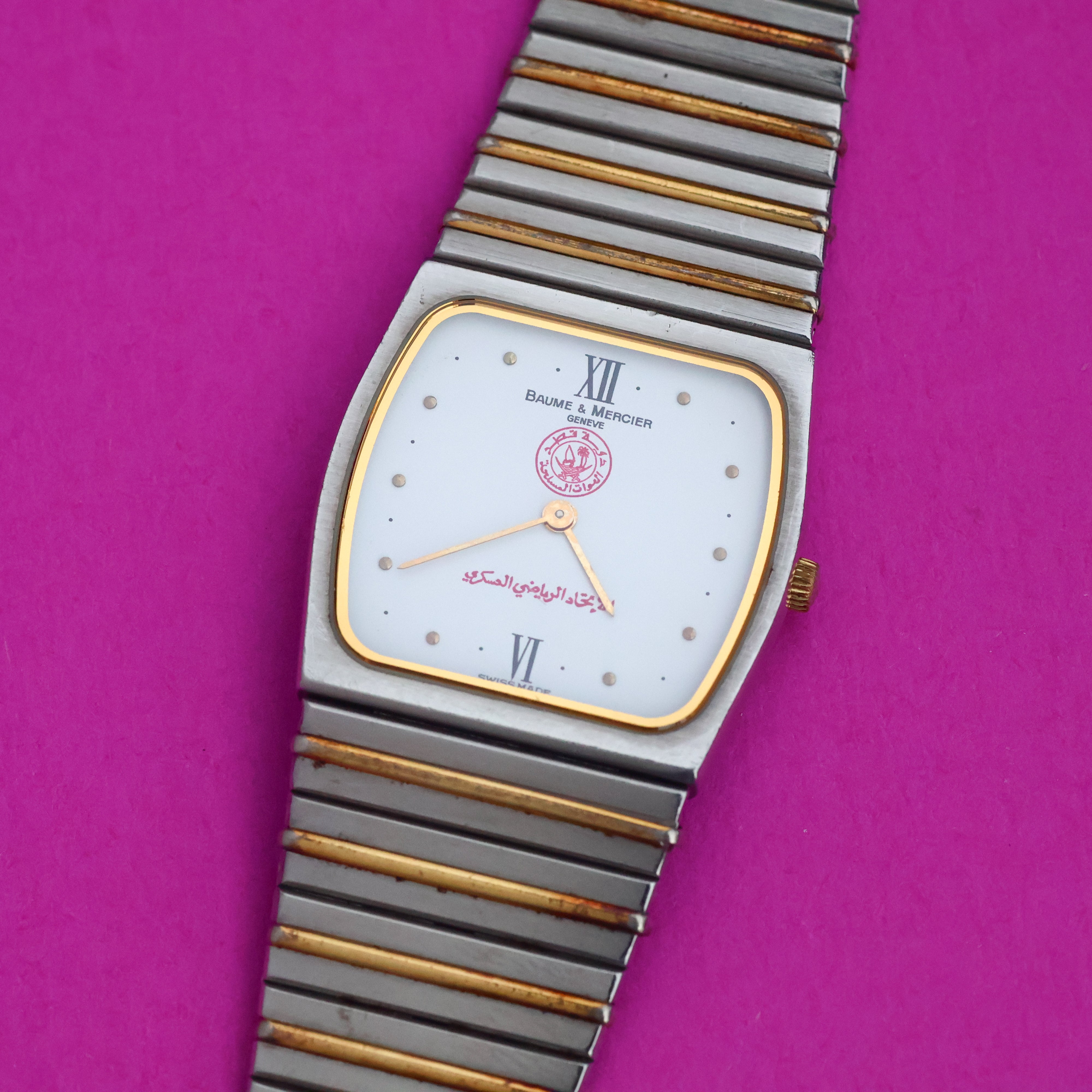 You guys know I have a weak spot for Baume & Mercier. ✨But! I also have a weak spot for something special…. This Ref. 5738 with rare dial checks both boxes! ✅ The dial displays the State of Qatar crest in beautiful red. I had to do some research for the red line of text below with Google Lens.🔎 It reads: “Military Sports Union” (Qatar). In perfect military fashion, this piece has some dings and scratches, but is still in great condition! 🪖Find me another! 🙈