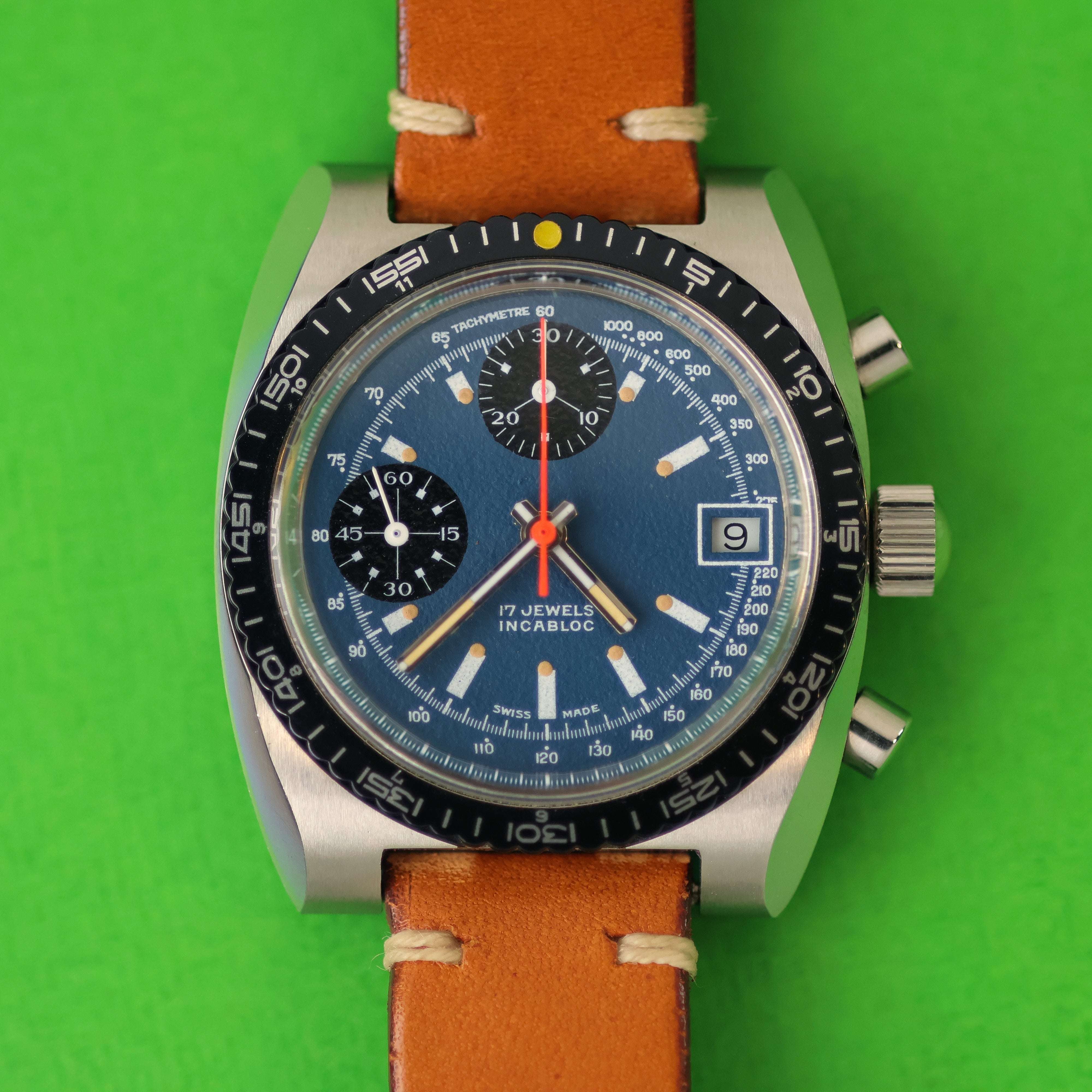 This Nivada Sports Chrono is a special watch you will not see very often.. The cases were manufactured for Nivada and Dugena, however the hands give away that this is most likely a Nivada prototype. In 2015/2016 a number of these came on the market. No clue as to how this happened and who took/received them. This one was sold by Theo and Harris in 2016.